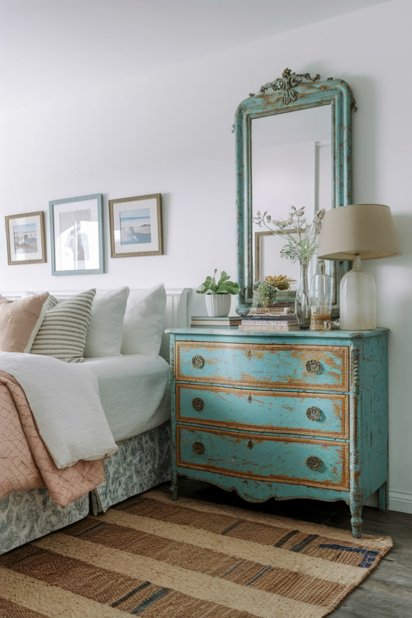 A boho bedroom should feel collected over time, not purchased from a single store catalog. Incorporate vintage or second-hand pieces that have character and a sense of history. A weathered antique dresser, a beautifully tarnished mirror, or a collection of old books can add soul and personality to your room.
