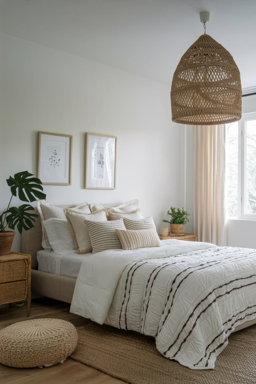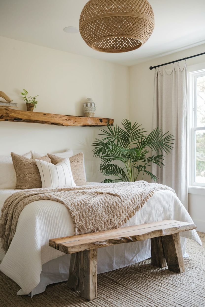 When selecting your statement item, consider the room’s scale. A larger bedroom can handle a dramatic headboard, while a smaller space might benefit more from a rattan side table or a set of hanging shelves. This element should draw the eye and celebrate the artistry of natural materials.