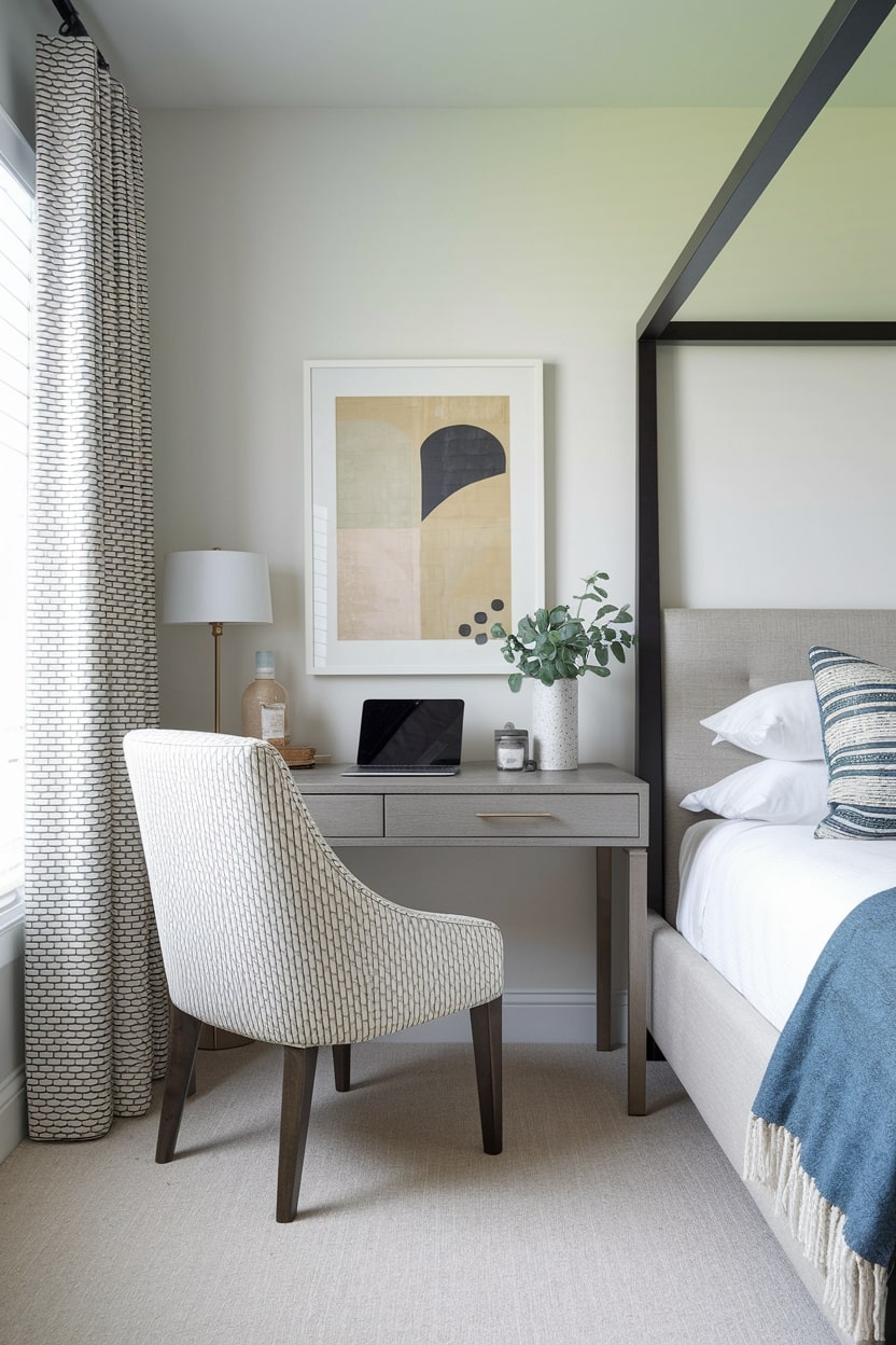 In many homes, the guest room must also serve as a home office. You can embrace this dual purpose by choosing a desk that also benefits your visitors. A slim writing desk or a stylish console table provides a dedicated surface for a guest to use their laptop, apply makeup, or simply organize their pocket contents. Paired with a comfortable, upholstered chair instead of a standard office chair, this area becomes a versatile nook that serves both work and hospitality.