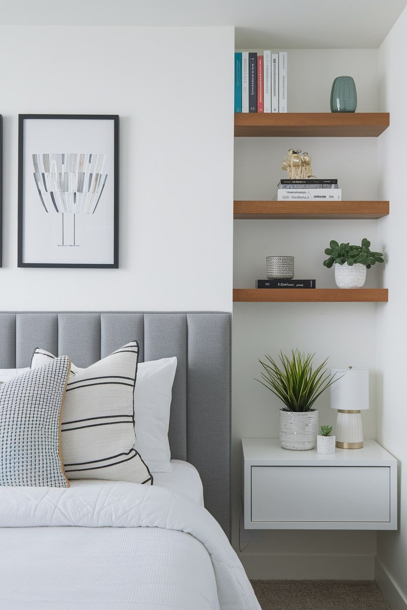 When floor space is limited, the only place to go is up. Vertical storage solutions draw the eye upward and turn an empty wall into a functional display. Installing a set of minimalist floating shelves provides a modern look and a perfect spot for a few books, a small decorative plant, and a framed card with the Wi-Fi password. Alternatively, a tall, narrow bookcase tucked into a corner can serve as a “welcome station” where guests can place their small personal items without cluttering the nightstand.