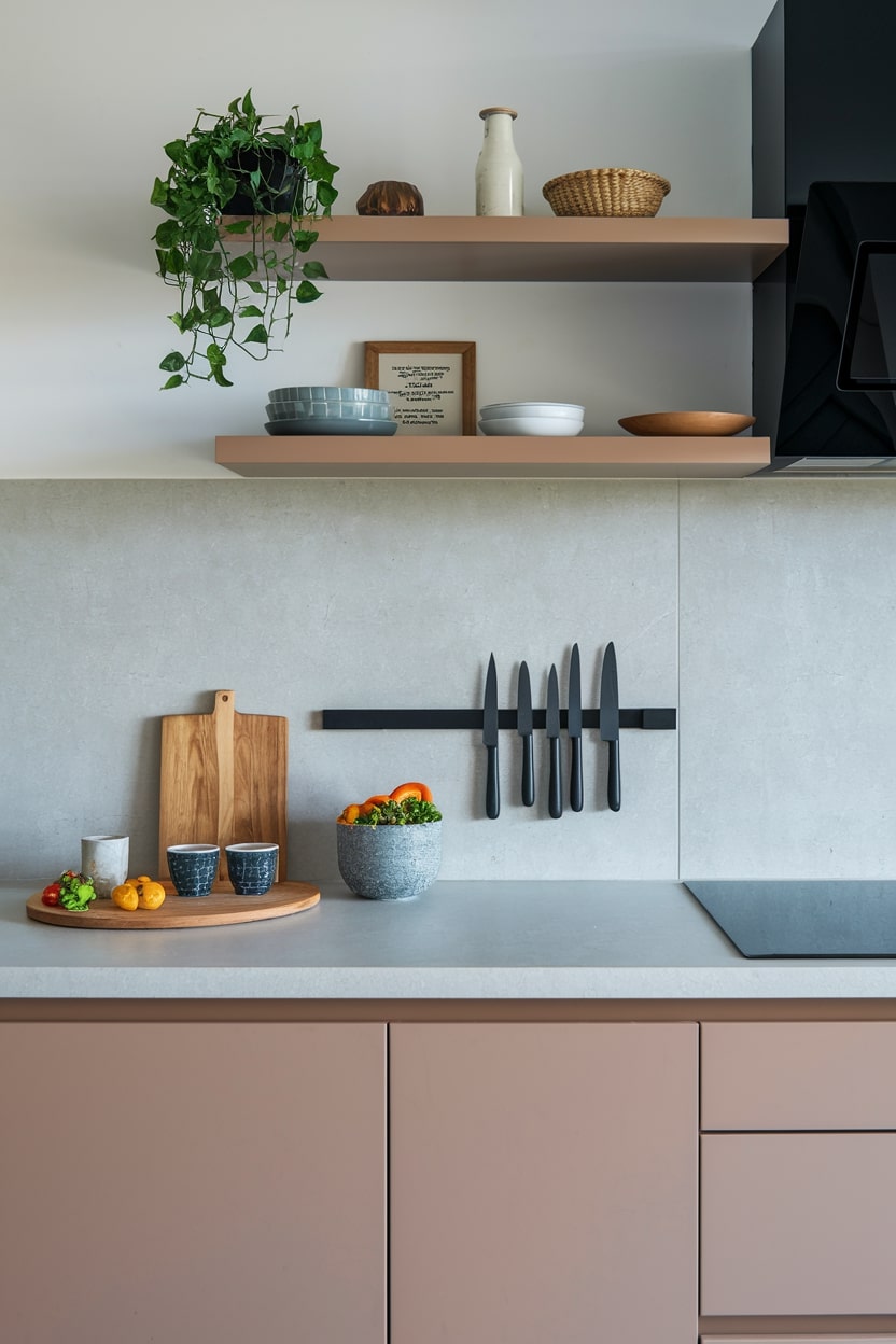 Install floating shelves to hold frequently used items. This keeps your counters clear for meal prep. Use a magnetic knife strip instead of a bulky knife block. It looks modern and saves precious inches.