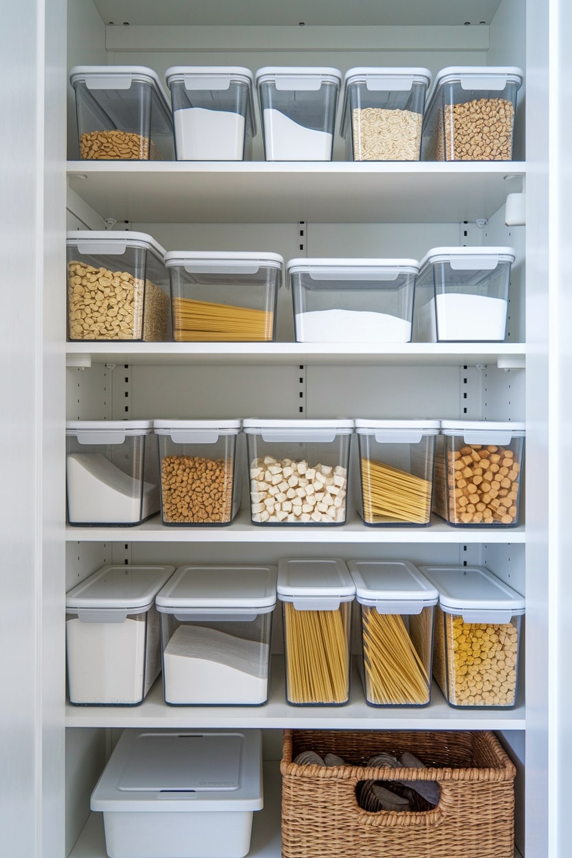 Mismatched boxes and bags make a pantry look chaotic. They also waste space because they don’t fit together perfectly.