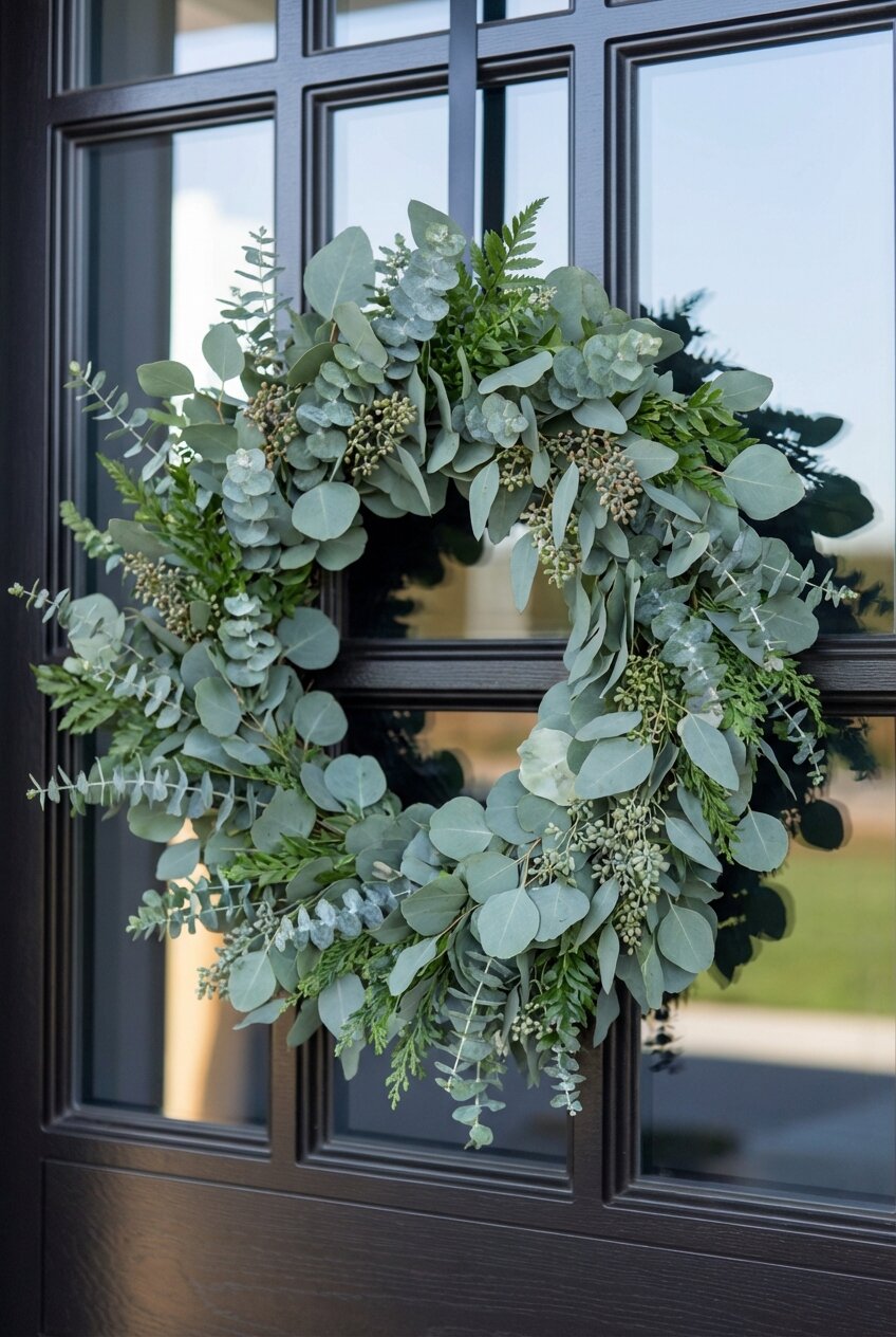 Don’t leave your door bare. A spring wreath for the front door made of eucalyptus, lavender, or dried wildflowers invites the season inward.